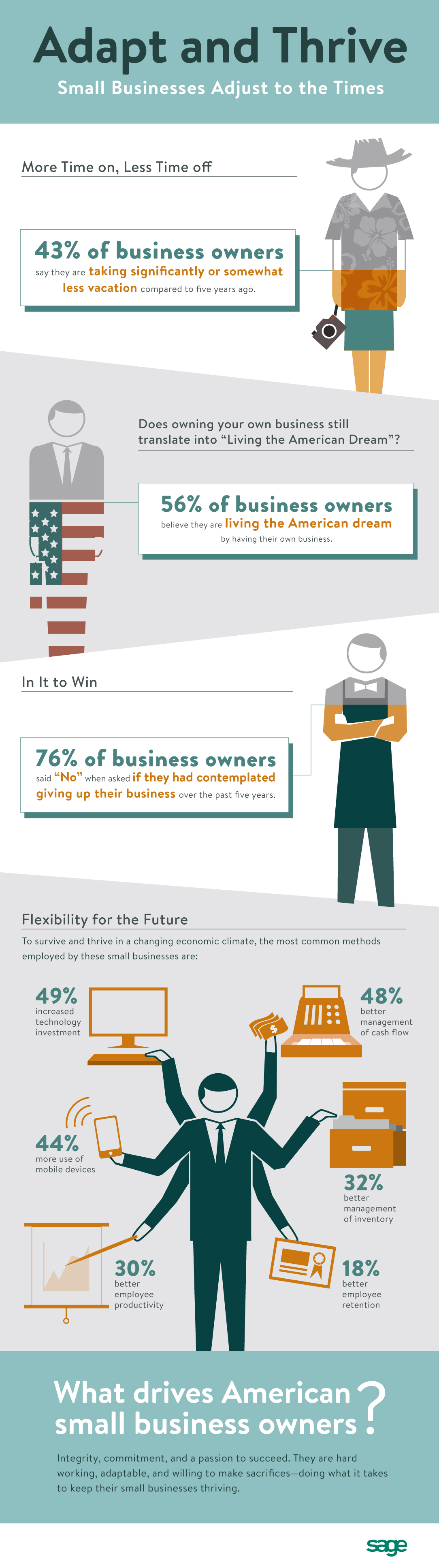 Sage Summit 2014 post conference highlights Wow! Sage Summit 2014 was amazing. Thanks to the more than 5,000 and the best minds in business (from Magic Johnson to Robert Gibbs and Karl Rove). See the highlights. Small business advertising 2014 Small businesses everywhere need more local advertising. State of the start-up 2013 Find out why people are starting their own business. Re-invention of small business 2013 Learn what small business owners are doing since the economic downturn and what they're doing to recover. Small business financial capabilities 2013 This survey explores the current financial priorities of small business owners in the U.S. . . . and how Sage helps them succeed. Mobile device information for small and medium-sized businesses 2014 and 2013 Survey results on how mobile devices have impacted their businesses. Hiring outlook for small and medium-sized businesses 2013 Industry specific Manufacturing and distribution Read the following: General economic forecast for 2014 Hiring outlook Mobility Construction Read the following: Mobility Hiring outlook Accountants We have data for accountants to help them run their business. Read the usage survey