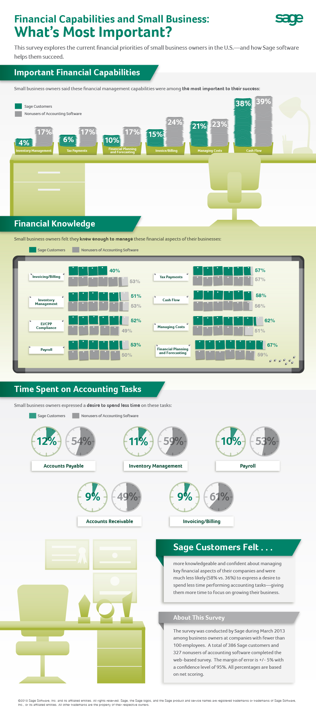 Small business financial capabilities 2013 This survey explores the current financial priorities of small business owners in the U.S. . . . and how Sage helps them succeed.